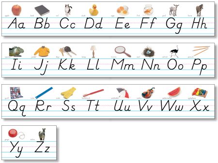 Use these alphabet lines to teach the alphabet and proper letter formation. Each alphabet line measures over 14′ (4.3 m) long when assembled. Seven 24 1/4" x 7 5/8" (61.6 x 19.4 cm) strips per package.