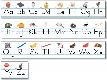 Use these alphabet lines to teach the alphabet and proper letter formation. Each alphabet line measures over 14′ (4.3 m) long when assembled. Seven 24 1/4” x 7 5/8” (61.6 x 19.4 cm) strips per package.