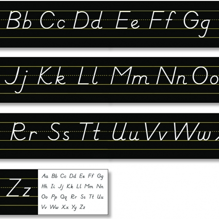 Use this alphabet line to teach the ASL manual alphabet. Photographs demonstrate hand symbols for all 26 letters. Measures over 14′ (4.3 m) long when assembled. Seven 24 1/4” x 7 5/8” (61.6 x 19.4 cm) strips per package.
