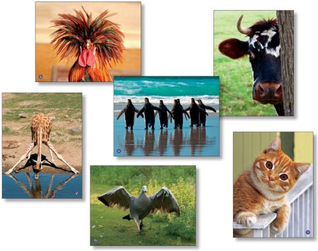 Show students the lighter side of the animal world with these entertaining language cards. Designed to help stimulate the development of oral and written language skills, the set includes 34 two-sided 6″ x 8″ (15.2 x 20.3 cm) photo cards (68 numbered photos) featuring a variety of domestic and wild animals behaving in amusing ways. Includes a teacher guide with usage ideas and sample story starters.
