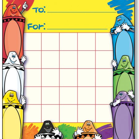 Students will find goal-tracking on these colorful charts very rewarding! Ideal for homework assignments, recording progress, rewarding accomplishments, or motivating good behavior. Each chart has ample space for student’s name, chart’s purpose, and 25 of your favorite stickers, stamps or hand-written notes. Awards may be given when charts are filled. 51/4” x 6” (13.3 x 15.2 cm). 36 per package.