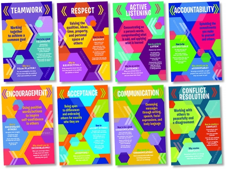 NEW! Social Skills: Shaping Successful Relationships Provide students the tools for achieving strong relationships with family, friends, teachers, and peers! Set includes eight 11″ x 17″ (27.9 x 43.2 cm) posters, each focused on the intent, purpose, and manner in which to accomplish a specific social skill. 8 pieces.