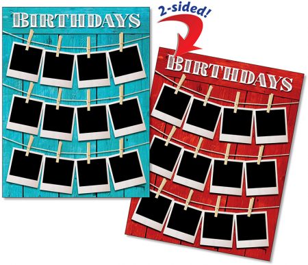This two-sided poster provides a great value! Affix individual student photos and write in student name and/or birth date. For larger classes, group students by birthday month and creatively photograph them holding signs or standing under labels with their birth dates, then affix the group shots to poster. Even easier, just add a cellphone generated ‘sticker’ with birthdates to the images, using your favorite photo app prior to printing out student pics. Measures 17” x 22” (43.2 x 55.9 cm). 1 poster/2-sided printing.