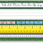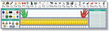 Canadian Primary desk plates include photo alphabet line, name plate with right and left handprints, 30 cm ruler, number line (0 to 30), shapes and colours, Canadian currency, and hundred chart. Size 19 x 5″ (48.3 X 12.7 cm) 36 per package.