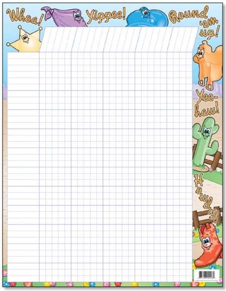 Encourage your entire class to achieve new goals! Ideal for tracking student progress, rewarding accomplishments, and motivating positive actions, these colorful charts can be used to monitor attendance, homework assignments, classroom performance, or completed activities. Each chart has space for 36 student names and 864 of your favorite stickers, stamps or hand-written marks. 17" x 22" (43.2 x 55.9 cm). Sold individually.