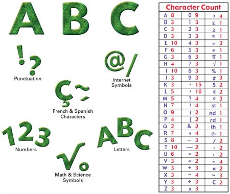Personalize your bulletin boards and classroom displays with these colorful and versatile punch-out letters, numbers, and symbols. Each set contains 281 characters measuring approximately 1 3/4” (4.4 cm) high and features 134 capital letters, 36 numbers, punctuation marks, French & Spanish characters, math & science symbols, and Internet symbols.