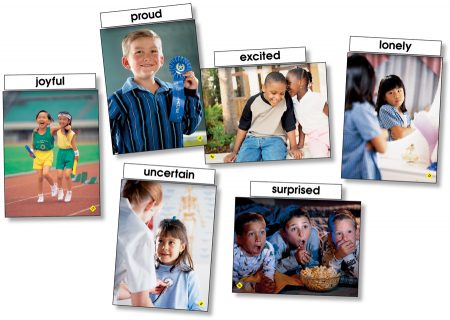 Help students of all ages recognize and understand the subtleties of human emotion while expanding their oral and written language skills. Expressive, two-sided photo cards capture familiar childhood emotions. The set also includes related emotion word cards to facilitate interactive classroom exercises and help build vocabulary.