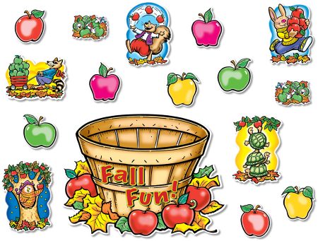 Features a 21 1/4” x 16” (54 x 40.6 cm) apple basket that is die-cut for apple storage or display, 32 apples for use as name tags or labels, and 8 accents. Includes a four-page teacher guide with reproducibles. 41 pieces. Not all pieces shown.
