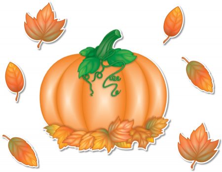 Pumpkin measures 14 3/4” x 14 1/4” (37.5 x 36.2 cm). 7 pieces. For easy decorating, simply pop out these two-sided decorations and hang them on windows, walls, doors, or as mobiles! Minimum order requirement 3 or more.