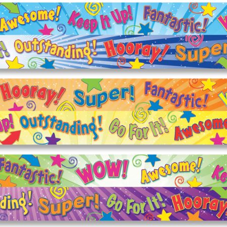 Bright colors, whimsical artwork, and fun phrases catch kids’ attention and motivate them to reach goals. Arm Charms are ideal for celebrating a special occasion, rewarding individual or class achievements, encouraging good behavior, or simply brightening up the day! Each package contains 72 paper bracelets measuring 8 1/2” x 7/8” (21.6 x 2.2 cm), plus 72 clear adhesive seals to secure the bands around the wrist.