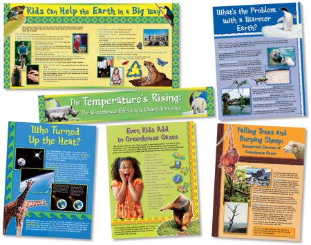 Explore the effects of global warming and help kids discover their role in preserving and protecting Earth. This set features a 34” x 5 1/2” (86.4 x 14 cm) banner and five posters that explain the greenhouse effect, the sources of greenhouse gases, the impact of global warming, and the ways kids can become earthkeepers. Includes a two-page teacher guide. 7 pieces.