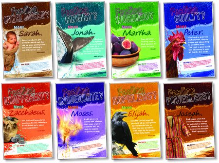 God has great purposes for his people, even if we are not perfect. Using iconic imagery, attention-getting questions, and applicable Bible verses, each poster illustrates the similarities between our struggles and those of familiar Bible characters, and highlights God’s unexpected ways of transforming our doubts and weaknesses into faith. 8 Poster 11″ x 17″ (27.9 x 43.2 cm).