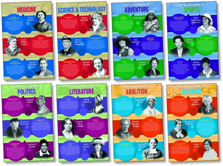 Explore the lives of women whose intelligence, determination, talents, and creativity helped define and advance American culture. Eight 11″ x 17″ (27.9 x 43.2 cm) posters—each featuring three women in a designated field—introduce prominent historical figures and familiarize students with their achievements. From politics and activism, to sports and adventure, these individuals earned America’s respect, and continue to inspire young people to set and achieve goals in a variety of fields and careers. Incorporate this set into your Black History Month studies to learn about some famous African American women and their contributions to the abolition of slavery (Sojourner Truth, Harriet Tubman), literature (Phillis Wheatley), politics (Barbara Jordan), and sports (Althea Gibson, Wilma Rudolph).