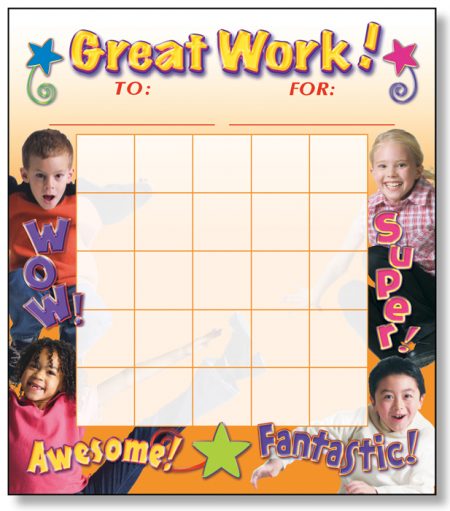 Students will find goal-tracking on these colorful charts very rewarding! Ideal for homework assignments, recording progress, rewarding accomplishments, or motivating good behavior. Each chart has ample space for student’s name, chart’s purpose, and 25 of your favorite stickers, stamps or hand-written notes. Awards may be given when charts are filled. 51/4” x 6” (13.3 x 15.2 cm). 36 per package.