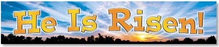 He is Risen Banner measures 69” x 13” (175.3 x 33 cm) – nearly 6′ (1.8 m) long! 1 per package. Bold, colorful banners encourage students and create a positive learning environment. Use these large banners to produce eye-catching displays or celebrate special occasions.
