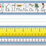 Intermediate desk plates include alphabet line, name plate, place value, 12” (30 cm) ruler, number line (-30 to 30), 12 x 12 multiplication chart, and equivalent fractions. Size 19 x 5″ (48.3 X 12.7 cm) 36 per package.