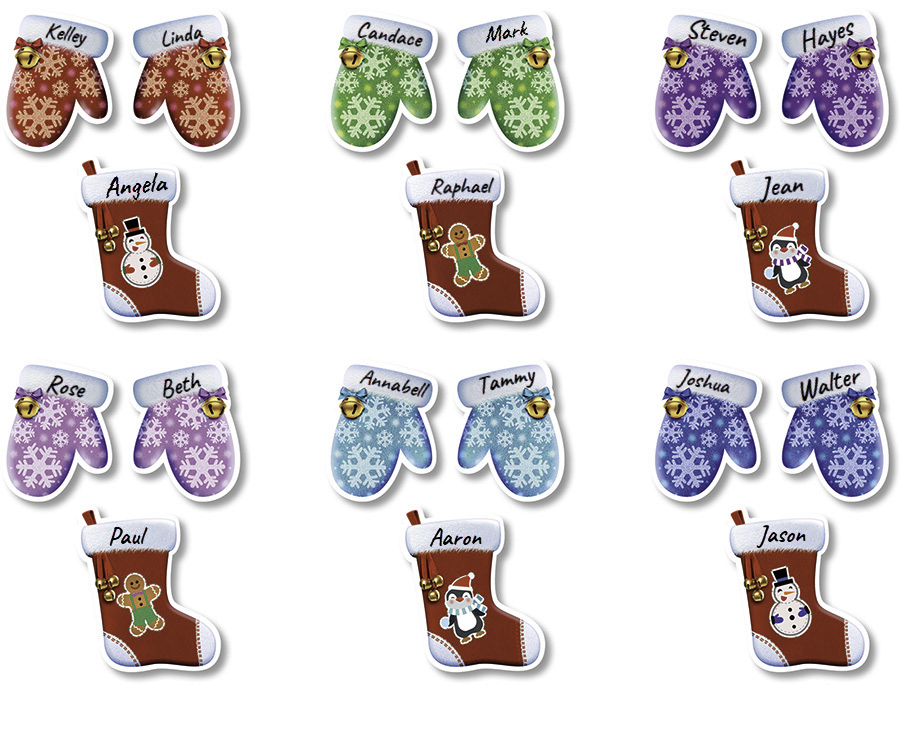 - 12 Unique Designs: Six mitten colors and six stocking designs.