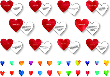 Scripture Hearts are a perfect companion to the NS3137 Growing in God’s Word Bulletin Board Set. These hearts can be given as motivators or awards for scripture memory work, or used for crafting and greeting card embellishments.