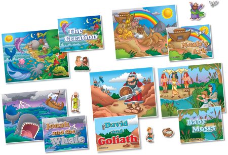 Out of Stock & Discontinued. We’re Sorry! Features scenes, title cards with Bible references, and extra pieces for 8 stories: The Creation, Noah’s Ark, The Coat of Many Colors, Baby Moses, The fall of Jericho, David and Goliath, Daniel in the Lions’ Den, and Jonah and the Whale. Includes a four-page teacher guide with reproducibles. 25 pieces.