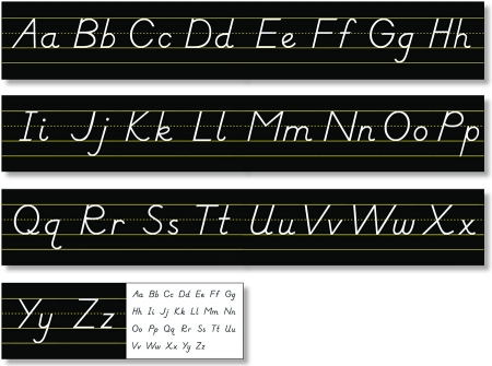 Use these alphabet lines to teach the alphabet and proper letter formation. Each alphabet line measures over 14? (4.3 m) long when assembled. Seven 24 1/4? x 7 5/8? (61.6 x 19.4 cm) strips per package.