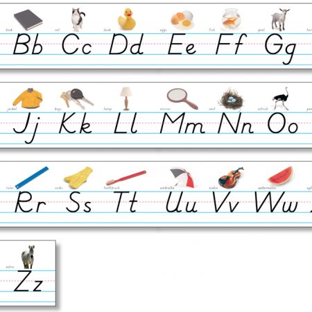 Use these alphabet lines to teach the alphabet and proper letter formation. Each alphabet line measures over 14′ (4.3 m) long when assembled. Seven 24 1/4” x 7 5/8” (61.6 x 19.4 cm) strips per package.