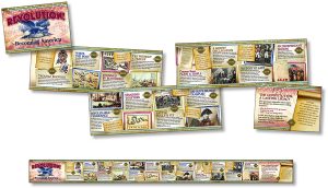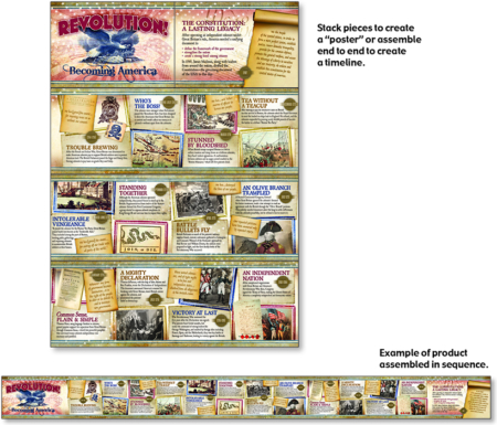 Discover the events that sparked a revolution in the colonies, and get to know the bold patriots who led the movement toward independence. Authentic historical artwork and quotations from the Declaration of Independence offer context and encourage a deeper understanding of the historical events leading to the founding of a new nation. Assemble strips end-to-end at 88″ wide x 7.625″ high (19.4×223.5cm) or assemble in poster format at 22″ wide x 30.5″ high.