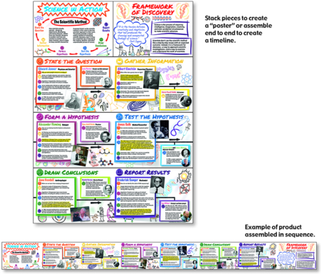 Discover the real-life application of the scientific method with this step-by-step examination of discoveries by some of historyメs most influential scientists. In addition to highlighting important scientists and their work, the Time Link familiarizes students with a variety of scientific fields of study and the use of the scientific method to obtain results. Assemble strips end-to-end at 88″ wide x 7.625″ high (19.4×223.5cm) or assemble in poster format at 22″ wide x 30.5″ high.