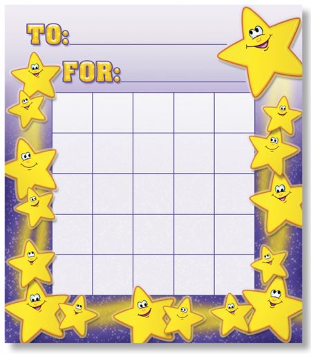 Out of Stock & Discontinued. We’re Sorry! Students will find goal-tracking on these colorful charts very rewarding! Ideal for homework assignments, recording progress, rewarding accomplishments, or motivating good behavior. Each chart has ample space for student’s name, chart’s purpose, and 25 of your favorite stickers, stamps or hand-written notes. Awards may be given when charts are filled. 51/4” x 6” (13.3 x 15.2 cm). 36 per package.