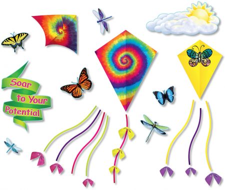 On a calm day, a kite cannot take flight, but with the adversity of wind, a kite will soar! Use this set to promote a growth mindset in the classroom and to showcase the work that students are most proud of. Encourage students as they experience daily difficulties and setbacks, then celebrate with them as they overcome challenges and soar to new heights of their potential. Set includes a 15-1/4″ x 20-3/4″ (38.7 x 52.7 cm) “Soar to Your Potential” title piece, three large kites, and accents. 28 pieces.