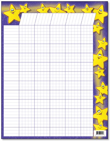Encourage your entire class to achieve new goals! Ideal for tracking student progress, rewarding accomplishments, and motivating positive actions, these colorful charts can be used to monitor attendance, homework assignments, classroom performance, or completed activities. Each chart has space for 36 student names and 864 of your favorite stickers, stamps or hand-written marks. 17″ x 22″ (43.2 x 55.9 cm). Sold individually.