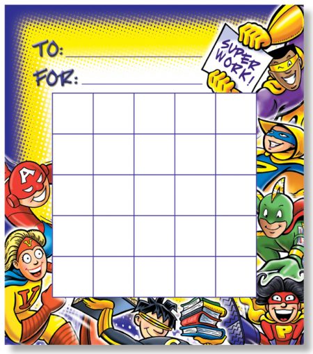 Students will find goal-tracking on these colorful charts very rewarding! Ideal for homework assignments, recording progress, rewarding accomplishments, or motivating good behavior. Each chart has ample space for student’s name, chart’s purpose, and 25 of your favorite stickers, stamps or hand-written notes. Awards may be given when charts are filled. 51/4” x 6” (13.3 x 15.2 cm). 36 per package.