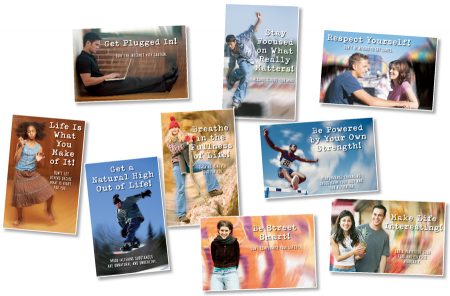 Engage pre-teens and teenagers in a dialogue about important issues facing students in upper elementary grades through high school. Using colorful, appealing photographs, each 11" x 17" (27.9 x 43.2 cm) poster communicates a positive message for young people. Featured topics include alcohol, body image, dating, depression, hygiene, internet safety, mood-altering drugs, nutrition, performance-enhancing drugs, personal safety, stress, and tobacco. 12 pieces.
