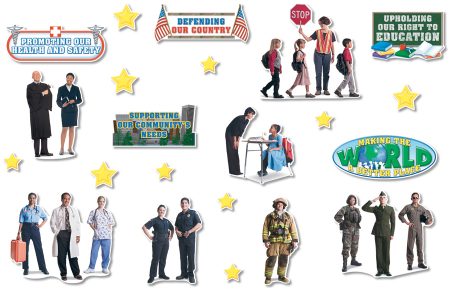 There are heroes all around us! Use this set to help students develop an appreciation for those who serve. Features 9 pieces showing 14 areas of service, 8 signs, and 20 stars. Includes a two-page teacher guide. 37 pieces. Not all pieces shown.