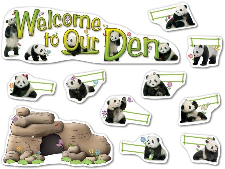 Tumble and frisk with playful pandas! Use this bulletin board to welcome students to a new year, accent displays of kids’ work, assign classroom tasks, or label desks, lockers and other designated areas. “Welcome to Our Den” banner measures 26 ¾” x 8 ½” (67.9 x 21.6 cm) and is accompanied by a 16 ¾” x 9” (42 x 22.9 cm) den and 36 pandas. Includes a four-page teacher guide with reproducibles. 39 pieces. Not all pieces shown.